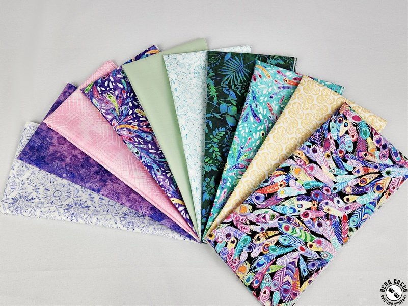 Peacock Parade Extra Wide Strip Pack View Larger Image Price: SALE $21.95 7 item(s) available. Item # SP-BCQC-PEACOCK-PARADE | Reg. $39.99 Tweet Pin It Peacock Parade Extra Wide Strip PackA Bear Creek Quilting Company Exclusive! 10 - Extra Wide Fabric Strips Each strip is a generous 1/4 yard of fabric, measuring 10 1/2" x WOF (42"/43") Possible cuts you can make from each strip: 4 - 10" squares 16 - 5" squares 4 - 2 1/2" strips Bundle is equal to approximately 2 7/8 yards of fabric 100% Cotton Manufactured by a variety of our fabric manufacturers Related Products 10 1/2 Inch Extra Wide Mystery Strip Pack Item # SP-BCQC-MYS-COTTON | Reg. $44.99 SALE from $20.00 5 Yard Mystery Fabric Bundle Item # SP-BCQC-MYS-5-YARD | Reg. $59.99 SALE from $30.00 Citrus Blossom Extra Wide Strip Pack Item # SP-BCQC-CITRUS-BLOSSOM | Reg. $39.99 SALE from $21.95 Cottage Garden Extra Wide Strip Pack Item # SP-BCQC-COTTAGE-GARDEN | Reg. $39.99 SALE from $21.95 Cozy Cabin Extra Wide Strip Pack Item # SP-BCQC-COZY-CABIN | Reg. $39.99 SALE from $21.95 Flannel #10 Extra Wide Strip Pack Item # SP-BCQC-FLANNEL-#10 | Reg. $39.99 SALE from $24.95 Flannel #11 Extra Wide Strip Pack Item # SP-BCQC-FLANNEL-#11 | Reg. $39.99 SALE from $24.95 Flannel #12 Extra Wide Strip Pack Item # SP-BCQC-FLANNEL-#12 | Reg. $39.99 SALE from $24.95 Flannel #3 Extra Wide Strip Pack Item # SP-BCQC-FLANNEL-#3 | Reg. $39.99 SALE from $24.95 Flannel #5 Extra Wide Strip Pack Item # SP-BCQC-FLANNEL-#5 | Reg. $39.99 SALE from $24.95 Flannel #6 Extra Wide Strip Pack Item # SP-BCQC-FLANNEL-#6 | Reg. $39.99 SALE from $24.95 Flower Shop Extra Wide Strip Pack Item # SP-BCQC-FLOWER-SHOP | Reg. $39.99 SALE from $21.95 French Market #3 Extra Wide Strip Pack Item # SP-BCQC-FRENCH-MARKET-#3 | Reg. $39.99 SALE from $21.95 Gnomeville Extra Wide Strip Pack Item # SP-BCQC-GNOMEVILLE | Reg. $39.99 SALE from $21.95 Irish Luck Extra Wide Strip Pack Item # SP-BCQC-IRISH-LUCK | Reg. $39.99 SALE from $21.95 Petite Beehive Extra Wide Strip Pack Item # SP-AF-PETITE-BEEHIVE | Reg. $79.99 SALE from $63.99 Plain and Simple Extra Wide Strip Pack Item # SP-AF-PLAIN-SIMPLE | Reg. $119.99 SALE from $95.99 Rustic Roots Extra Wide Strip Pack Item # SP-BCQC-RUSTIC-ROOTS | Reg. $39.99 SALE from $21.95 Simple Life Extra Wide Strip Pack Item # SP-BCQC-SIMPLE-LIFE | Reg. $39.99 SALE from $21.95 Wild Alaska Extra Wide Strip Pack Item # SP-BCQC-WILD-ALASKA | Reg. $39.99 SALE from $21.95
