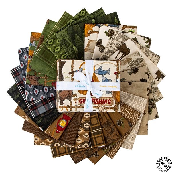 Happy campers abound with Pine Grove from the RBD Designers! The main print is filled with postcard moments of wildlife, canoes, cabins, tents, glampers and other camper themed things. The coordinating prints of wildlife, trees, pinecones, plaids and more will have you hankering for the great outdoors. The woodsy palette of brown, putty, black, green and tan will naturally have you creating all kinds of projects for at home and on the road. Don't miss the stunning "pen & ink" Pine Grove Outlines wideback. The Great Outdoors are calling and we want s'more!