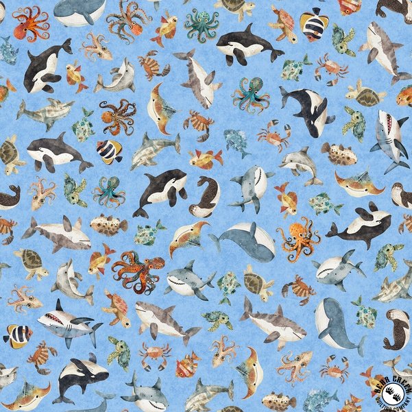 QT Fabrics Deep Sea Dazzle Sea Creatures Blue