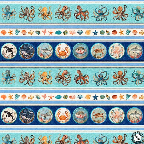 QT Fabrics Deep Sea Dazzle Undersea Border Stripe Multi
