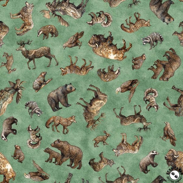 QT Fabrics Enchanted Forest Animal Toss Sage