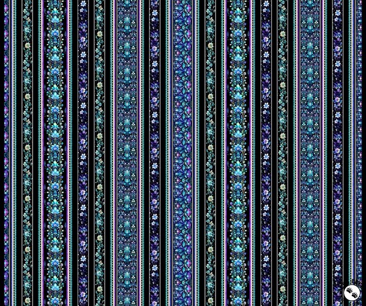 QT Fabrics Fantasia Floral Border Stripe Black