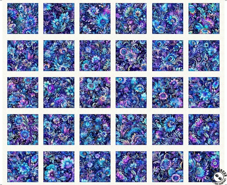Immerse yourself in the mesmerizing Fantasia  fabric collection by Dan Morris for QT Fabrics, where rich hues of vivid blue, turquoise, and deep purple create an enchanting symphony of color.  Designed to captivate, this collection brings drama and flair to your next quilting or home decor project.  Whether crafting a quick and easy quilt by adding borders to the stunning feature picture patch squares or designing a dreamy bedroom ensemble, these bold and beautiful fabrics will inspire creativity at every stitch.  Elevate your space with the magic of Fantasia—where artistry meets effortless elegance!