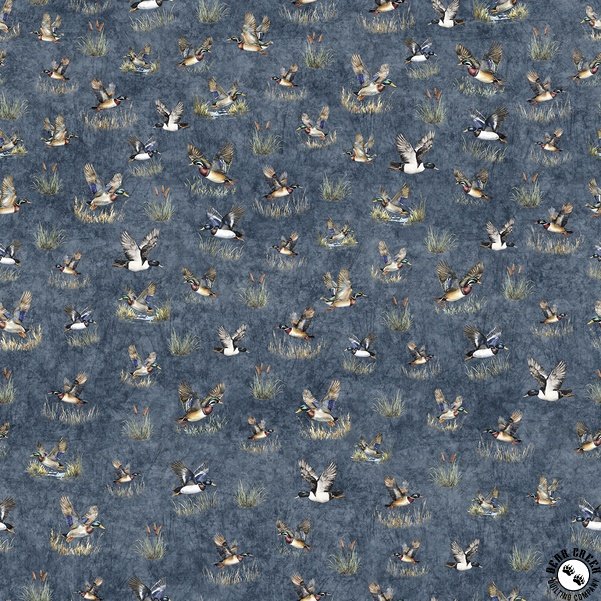 QT Fabrics Forest, Field and Stream Ducks Steel Blue