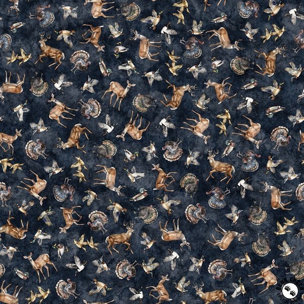 QT Fabrics Forest, Field and Stream Wildlife Toss Navy