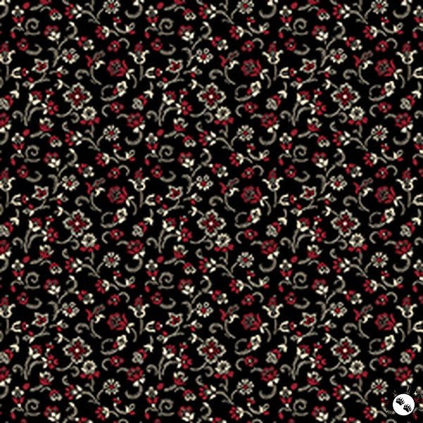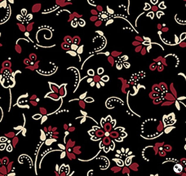 QT Fabrics Oxford Archival Flower with Dotted Scroll Black