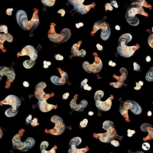 QT Fabrics Poultry in Motion Hens and Chicks Black
