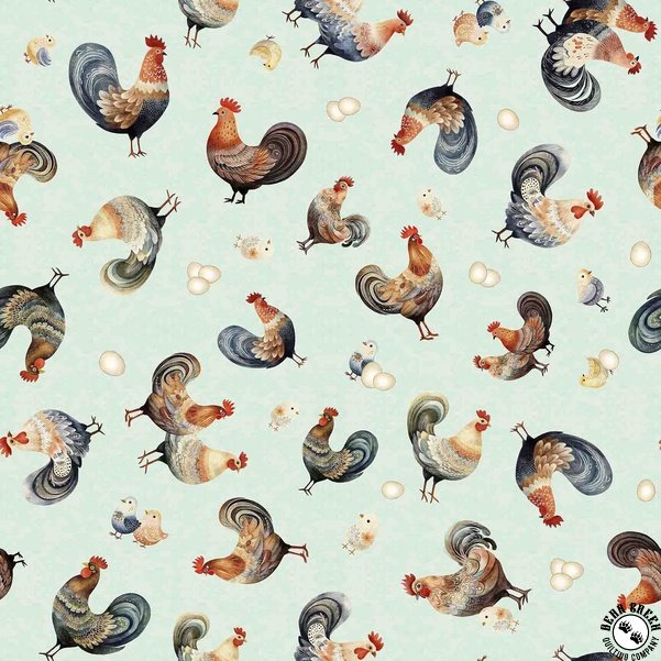 QT Fabrics Poultry in Motion Hens and Chicks Sage