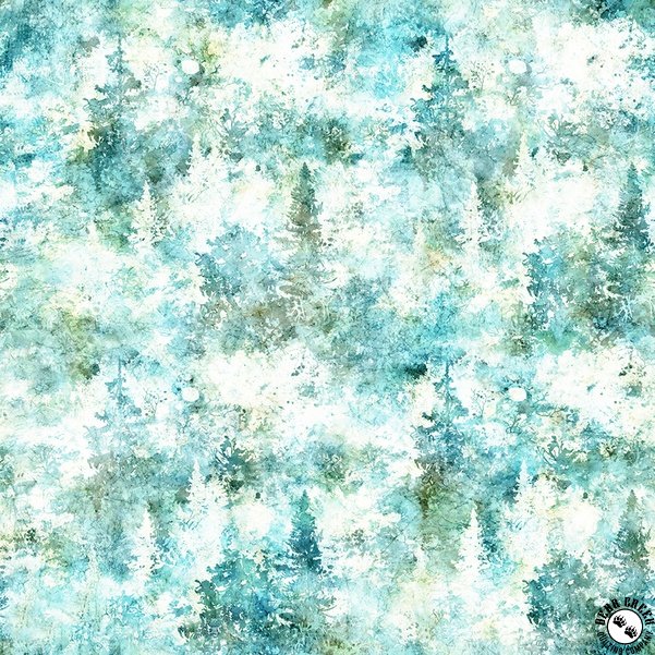 QT Fabrics Running with the Pack Pine Trees Turquoise