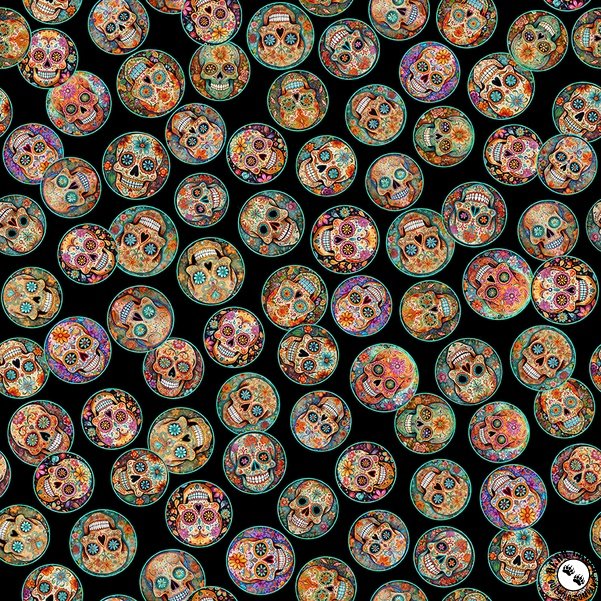 Celebrate vibrant tradition with the Skullduggery  fabric collection by QT Fabrics.  Featuring beautifully adorned sugar skulls in bold, eye-catching colors, this collection is paired with intricate florals and striking geometric designs.  Perfect for honoring Día de los Muertos—or adding a splash of festive flair any time of year—Skullduggery  is ideal for quilts, home decor, apparel, and accessories that are as lively as they are unforgettable.