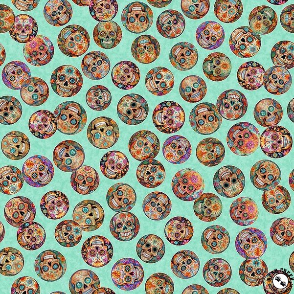 QT Fabrics Skullduggery Mini Sugar Skulls Turquoise