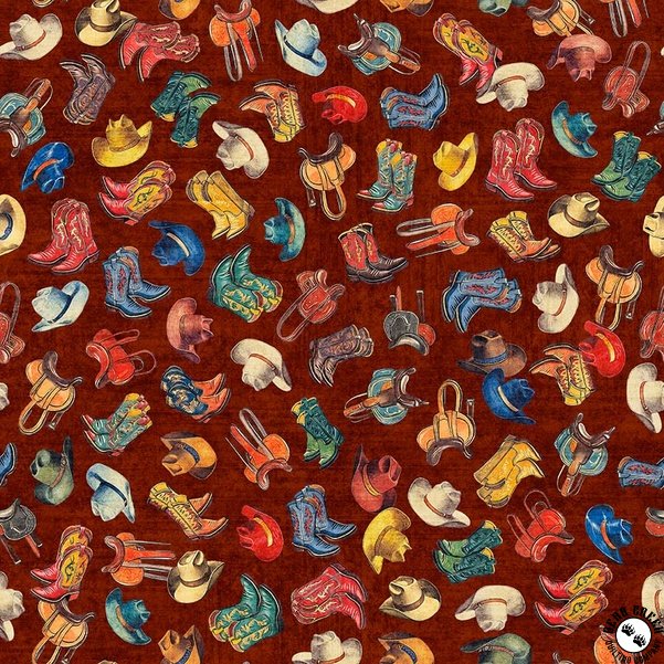 QT Fabrics Yippie Ki Yay! Cowboy Boots and Hats Brick