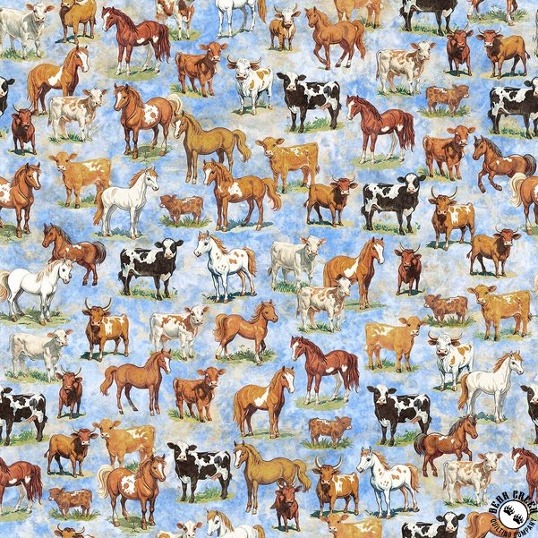 QT Fabrics Yippie Ki Yay! Cows and Horses Light Blue