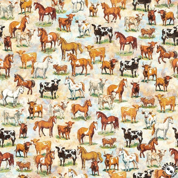 QT Fabrics Yippie Ki Yay! Cows and Horses Tan