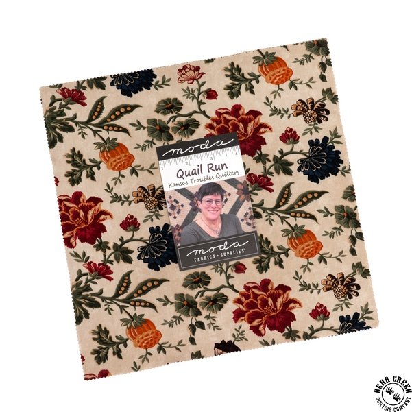 features a lovely floral print blooming with all the rich colors of a KT palette. Coordinating vines, berries, and geometrics add movement and depth to this collection. I enjoy watching the coveys of quail around our home each year, the mamas skittering across the driveway with a trail of chicks following closely behind. When I was young, my dad raised and trained bird dogs for hunting pheasant and quail. My brother and I enjoyed helping him feed and train the dogs at the farm each evening. We all knew when quail/pheasant season arrived; Dad would be with his hunting buddies and their dogs, enjoying long walks through the trees, brush, and wildflowers. At the end of the season, they all gathered for a huge potluck dinner with bacon-wrapped quail as the featured dish. Quail Run captures those fond childhood memories of time spent with my dad and his love of nature and conservation.