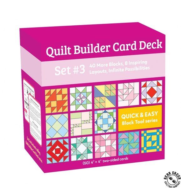 Dynamic quilts are a few cards away with the third set of the bestselling Quilt Builder Card Deck series! This new collection features 40 quilt blocks and eight quilt layouts.