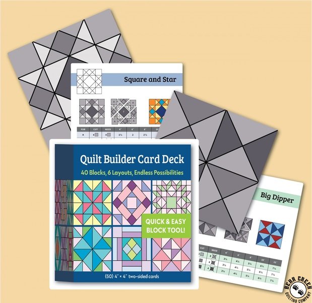 Deal yourself a quilt challenge with these delightful blocks to create dynamic quilts. Featuring (50) 4" x 4" cards, the possibilities are endless to create your unique quilt and are great for planning different options and layouts. Based on the best-selling series Quick & Easy Block Tool, this set is perfect to spur your creativity with quilt blocks. The card deck also makes for a thoughtful gift and an ideal project for you and your quilty friends to each work on a block for your next quilting bee. Unplug with these cards and do some hands-on quilt design!