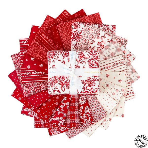 A sophisticated array of red and white prints!  Red Delicious  fabric collection will leave you dreaming of your favorite sweet treats.  Strawberry shortcake, raspberry galette, and apple tart - oh my!  Each one is unique, yet cohesive, creating a yummy collection of prints perfect for quilts and home decor projects.  Grab a spoon, we mean your sewing machine, and dig in.  This designer fabric collection is calorie-free!