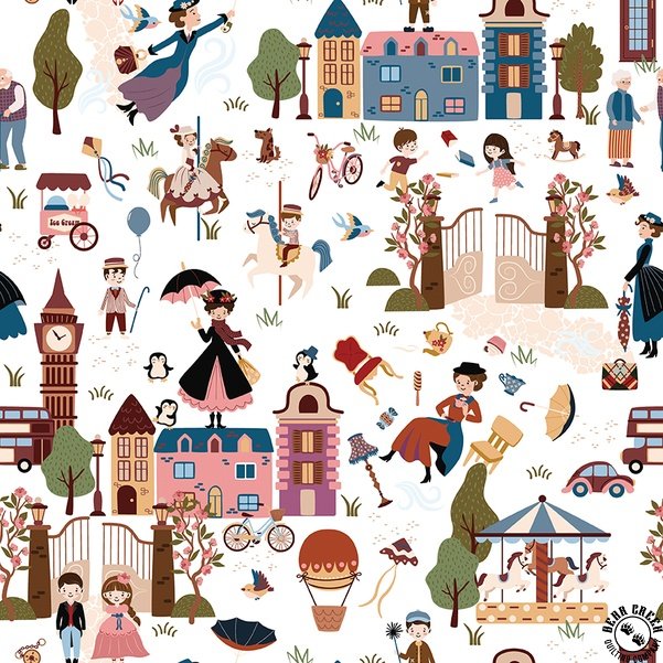Step into a world where imagination takes flight, laughter fills the air like the scent of fresh-baked tarts and adventure waits just beyond the next gust of wind. A Spoonful of Sugar is a fabric collection brimming with nostalgia, wonder, and the timeless magic of childhood-inviting you to create your very own story-filled creations inspired by the most delightful nanny of all!