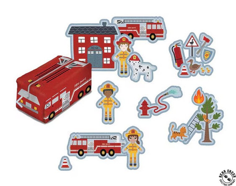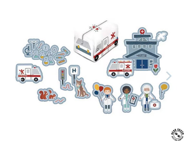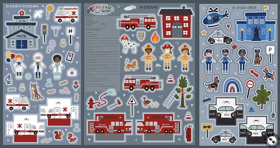 It Takes a Village fabric collection was designed to uplift some of the amazing people that make the wonderful communities we share, including medical professionals, firefighters, and police officers. It truly does take a village! Play with honor, and support everyone in YOUR "village" with playful discovery fabrics, felt dolls, 3D rescue trucks and more! What community projects will you make with this fabric collection? The possibilities are endless.