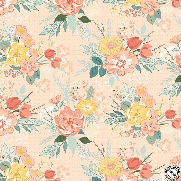 Mr. and Mrs. Birdie are donning their finest spring attire and are ready to celebrate the season.  Are you?  The New Beginnings  designer fabric collection by Sandy Gervais features a bounty of gorgeous florals and geometric prints.  Your sewing machine will be chirping along with you as you create the beautiful springtime quilts that coordinate with this delightful collection.