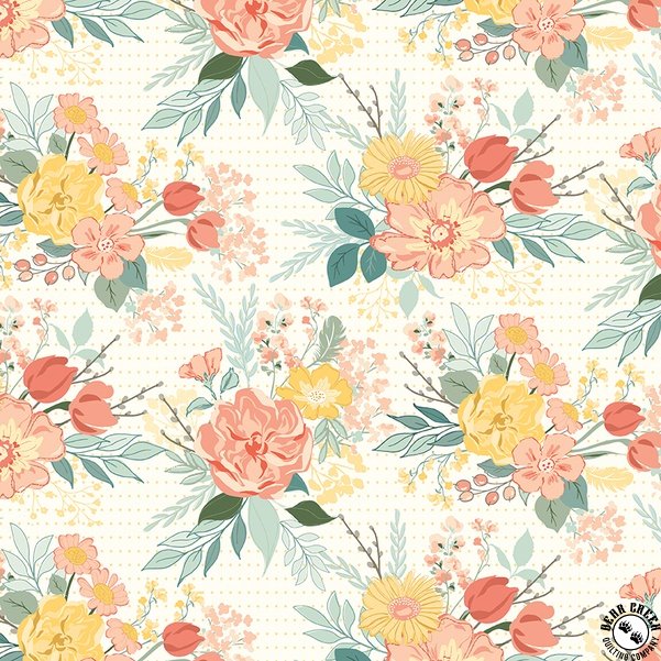 Mr. and Mrs. Birdie are donning their finest spring attire and are ready to celebrate the season.  Are you?  The New Beginnings  designer fabric collection by Sandy Gervais features a bounty of gorgeous florals and geometric prints.  Your sewing machine will be chirping along with you as you create the beautiful springtime quilts that coordinate with this delightful collection.