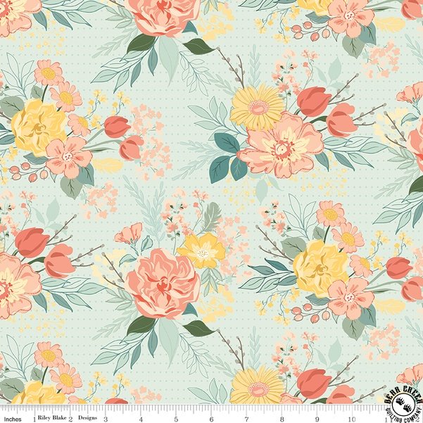 Mr. and Mrs. Birdie are donning their finest spring attire and are ready to celebrate the season.  Are you?  The New Beginnings  designer fabric collection by Sandy Gervais features a bounty of gorgeous florals and geometric prints.  Your sewing machine will be chirping along with you as you create the beautiful springtime quilts that coordinate with this delightful collection.