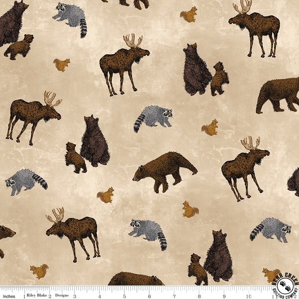 Happy campers abound with Pine Grove from the RBD Designers! The main print is filled with postcard moments of wildlife, canoes, cabins, tents, glampers and other camper themed things. The coordinating prints of wildlife, trees, pinecones, plaids and more will have you hankering for the great outdoors. The woodsy palette of brown, putty, black, green and tan will naturally have you creating all kinds of projects for at home and on the road. Don't miss the stunning "pen & ink" Pine Grove Outlines wideback. The Great Outdoors are calling and we want s'more!