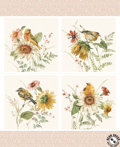 Bask in the gentle glow of Sunflower Whispers,  where the warmth of sunshine meets the artistry of timeless design. Inspired by nature’s beauty, this collection flourishes in a vibrant palette of golden yellows, fresh greens, soft blush, warm pumpkin, and creamy neutrals. With its blend of rustic charm and graceful elegance, Sunflower Whispers  invites you to create quilts and sewing projects that feel both radiant and enduring.