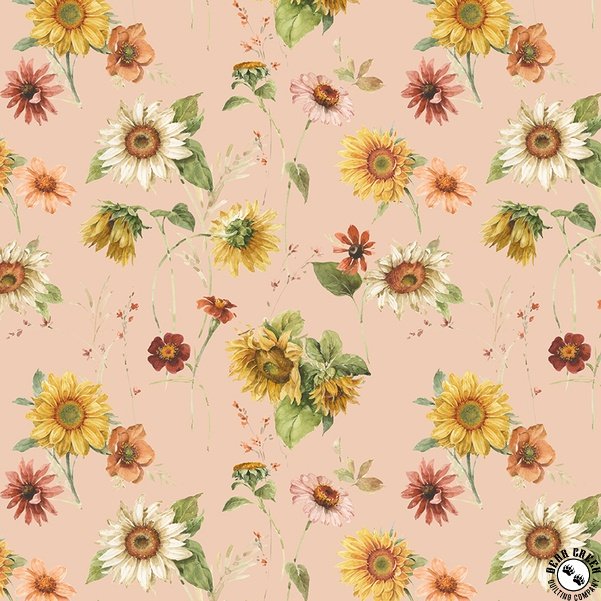 Bask in the gentle glow of Sunflower Whispers,  where the warmth of sunshine meets the artistry of timeless design. Inspired by nature’s beauty, this collection flourishes in a vibrant palette of golden yellows, fresh greens, soft blush, warm pumpkin, and creamy neutrals. With its blend of rustic charm and graceful elegance, Sunflower Whispers  invites you to create quilts and sewing projects that feel both radiant and enduring.