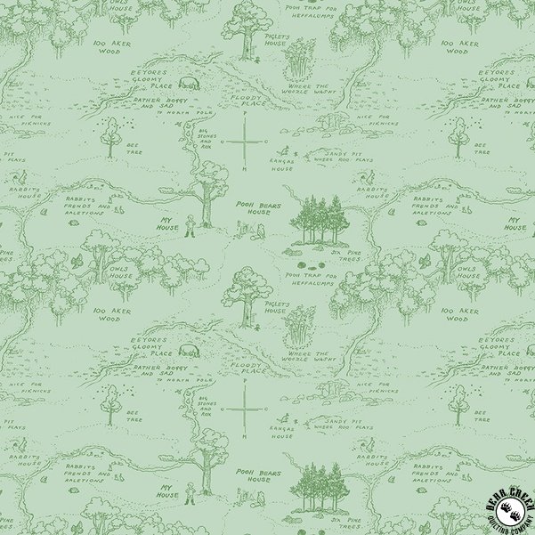 The Winnie The Pooh  fabric collection captures the heartwarming nostalgia of childhood through delightful designs inspired by dear friends and grand adventures.  Featuring a gentle palette of green, cream, blue, brown, and sunshine yellow, this collection highlights beloved characters, playful bees, classic plaids, and a whimsical map of the Hundred Acre Wood.  Perfect for cozy quilts and heartfelt crafts, this “silly old bear” fabric collection brings the timeless tales of friendship, wonder, and imagination beautifully to life.