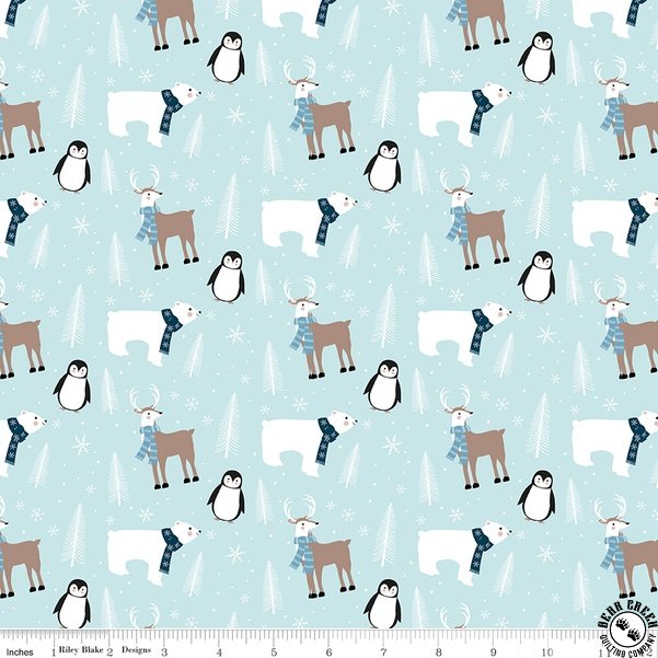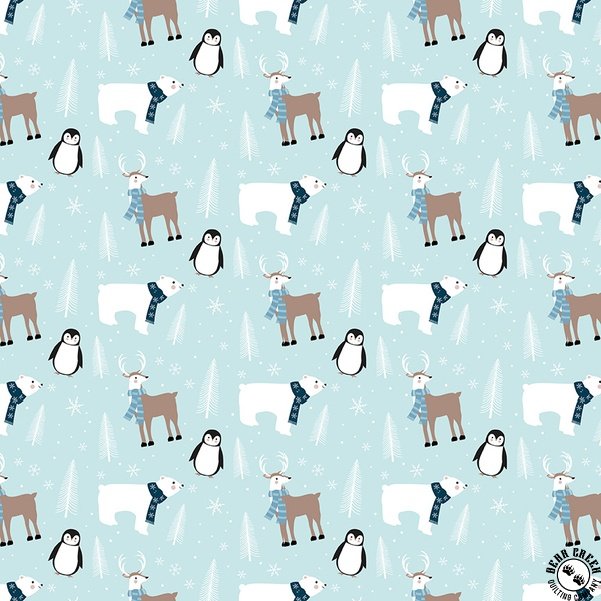 Bundle up in your coat, hat, and gloves and step into the enchanting world of Winter Magic  by Dani Mogstad.  This whimsical collection will delight you with arctic animals, snowy forests, and a wintry palette of aqua, blue, white, navy, tea dye, and sky.  At the heart of the collection is the charming Winter Magic  panel, featuring the sweet reminder that "everything is magical when it snows."  Coordinating prints of delicate florals, cozy sweater stripes, frosty snowflakes, swirling snow, and wintry trees open up a wonderland of creative possibilities.