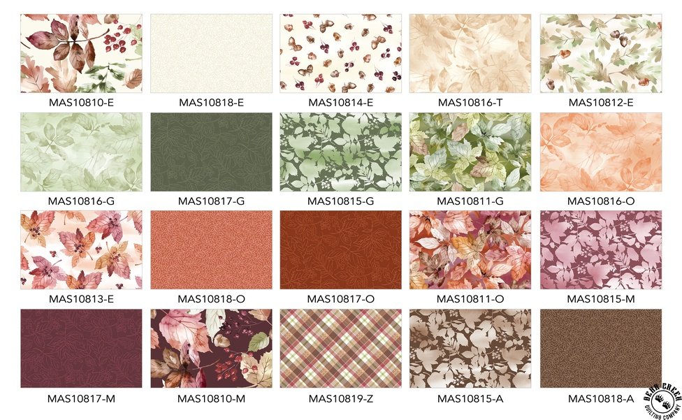 Listen to the sound of leaves crunching beneath your feet as you stroll though the autumn foliage.  The rich rusts, bowns, vibrant greens, and dark berries in the Rustle  fabric collection will transport you to the serene beauty of fall - the perfect season for sewing a quilt to cozy up iwth as the cooler weather sets in.  Get inspired by the watercolor shapes, colors, and textures that add a fresh look to a classic seaon.