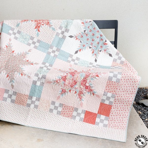 The free pattern is designed for fabric collections to help give you inspirational ideas on how to use that collection in a quilt, tote bag, table runners and more.