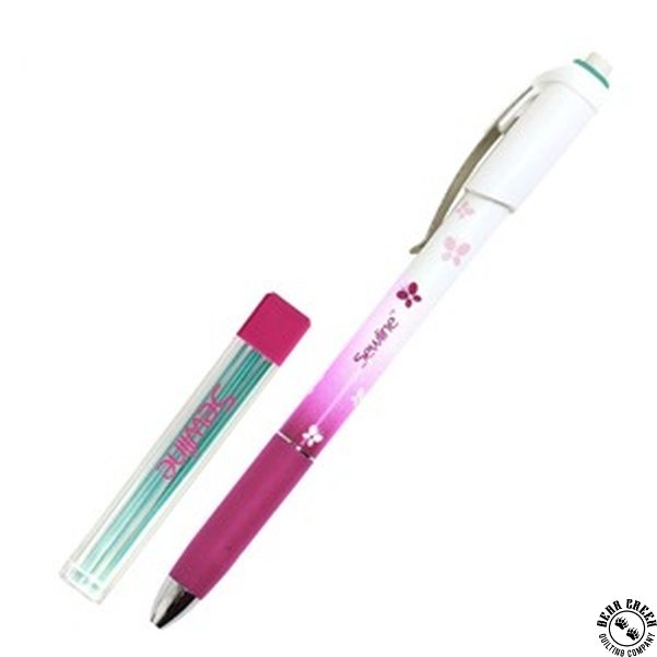 Clean clear lines, easily erased!  Mechanical fabric pencil with strong .9mm ceramic lead colored with water-soluble dyes gives clear, clean lines that are easily removed with attached eraser or damp cloth.  It is comfortable to use and no messy wood shavings.  Specially formulated for fabrics.