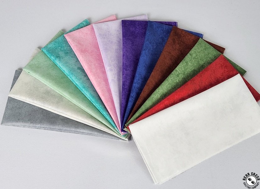 The ultimate fabric palette is here!  Shadow Play,  the supreme blender collection from Maywood Studio, now includes even more colors that will match anything and everything.  On-trend shades bring this basics collection up to a total of 168 distinct colors that will help your latest project pop.  Use them together to create shadows and highlights in pictorial quilts or in combination with any print or solid to make a cohesive quilt design.