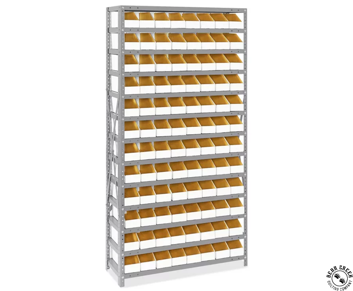 Shelf Bin Organizer View Larger Image Price: $0.00 1 item(s) available. Item # SHELF-BIN-ORGANIZER Pin It Shelf Bin Organizer for SaleRetiring/Store Closing! Used in an fabric shipping warehouse setting. Very clean! 13 Shelves per unit Powder-Coated steel frame Adjustable shelves Overall Dimensions: 36" wide x 12" deep x 75" high Corrugated Bins available; sold separately Manufactured by Uline $120.00 each Located in Lebanon, Oregon. Local pickup only.Purchaser is responsible for take down, pickup, transportation, re-assembly, and all associated costs. Related Products Bolt Buddies Item # BOLT-BUDDIES-1-LB $15.00 Closed Stackable Plastic Pallet Item # PLASTIC-PALLET $0.00 Folding Security Gate Item # FOLDING-SECURITY-GATE $0.00 Glide Thread - 209 Spool Total Bundle Item # GLIDE-THREAD-TOTAL-BUNDLE $0.00 Gravity Roller Conveyor Unit Item # CONVEYOR-UNIT $0.00 Industrial Lockers - Set of 6 Item # INDUSTRIAL-LOCKERS $0.00 Omni Thread - 250 Spool Total Bundle Item # OMNI-THREAD-TOTAL-BUNDLE $0.00 Pallet Rack Unit - Set of 5 Item # PALLET-RACK-UNIT $0.00 Quilters Dream Batting 70/30 Blend (King 120" x 25yds") - ROLL Item # QDB-70-30-BLEND-KING-ROLL $0.00 Quilters Dream Batting 70/30 Blend (Throw 60" x 30yds) - ROLL Item # QDB-70-30-BLEND-THROW-ROLL $0.00 Quilters Dream Batting Natural Cotton - Request (Queen 93" x 30yds") - ROLL Item # QDB-CTN-REQUEST-QUEEN-ROLL $0.00 Rolling Desk/Task Chair - BLACK Item # ROLLING-CHAIR-BLACK $0.00 Rubbermaid Janitor Cleaning Cart Item # CLEANING-CART $0.00 Rubbermaid Service Cart Item # SERVICE-CART $0.00 Sterilite 15 Quart Clear Latch Tote with Lid - CLEAR/SWEET PLUM Item # LG-CLEAR-TOTE-1753 $0.00 Sterilite 6 Quart Clear Latch Tote with Lid - CLEAR/SWEET PLUM Item # SM-CLEAR-TOTE-1751 $0.00 Uline Stackable Space Age Tote - BLACK Item # ULINE-BLACK-TOTE $0.00 Wire Shelving Racks Item # WIRE-SHELVING-7-SHELF $0.00 Wood Desk Item # WOOD-ADMIN-DESK $0.00