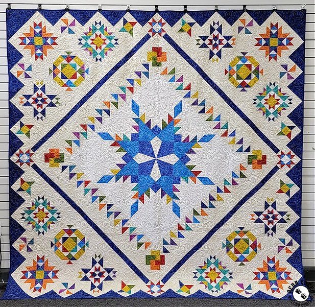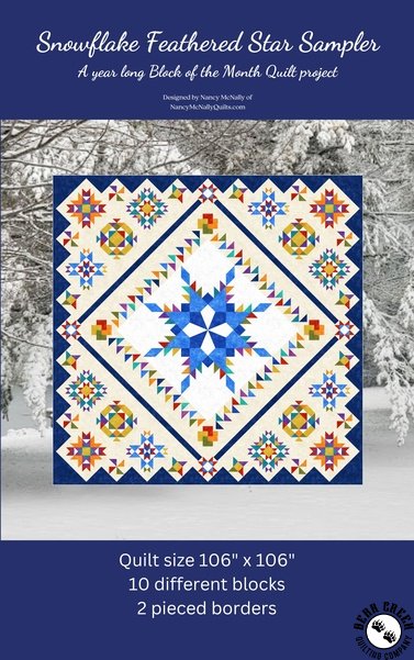 Snowflake Feathered Star Quilt Sampler, 10 different quilt blocks, 2 pieced borders.