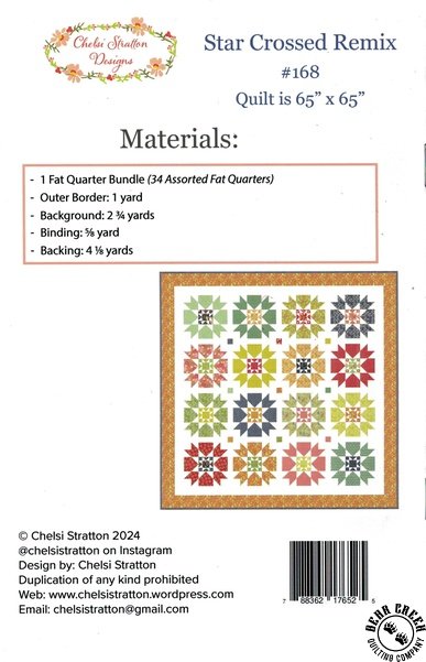 Star Crossed Remix Quilt Pattern View Larger Image Price: SALE $8.39 3 item(s) available. Item # PTN-CSD-168 | Reg. $11.99 Tweet Pin It Anthem Quilt PatternFeaturing the Raspberry Summer fabric collection by Moda. Pattern and instructions; fabric not included Finished size is 65 inches by 65 inches Authored by Chelsi Stratton and Published by Chelsi Stratton Designs Copyright 2025 Related Products Anthem Quilt Pattern Item # PTN-CSD-164 | Reg. $11.99 SALE from $8.39 Bountiful Baskets Quilt Pattern Item # PTN-CSD-165 | Reg. $11.99 SALE from $8.39 Star Bright 2 Quilt Pattern Item # PTN-QLD-256 | Reg. $11.99 SALE from $8.39 Sweet Adventure Quilt Pattern Item # PTN-CSD-166 | Reg. $11.99 SALE from $8.39