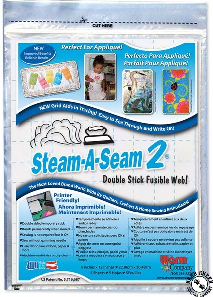 Steam-A-Seam 2 (double stick) has pressure sensitive adhesive on both sides which allows for temporary hold to both the applique material and the background material. Once fused, the bond is the permanent and complete! Unfinished edges won't lift or fray. Finished edges won't gum up your needle. Machine washable and dry cleanable. Print pattern from your desktop printer on the grid side instead of tracing.
