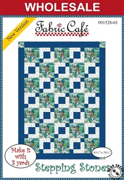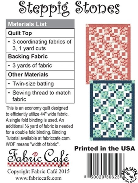 Stepping Stones 3-Yard Quilt Pattern, designed to help you craft a stunning 3-yard lap size quilt. The quilt measures 43 1/2 inches by 58 1/2 inches, perfect for adding a touch of warmth and color to any space. It's ideal for both novice and experienced quilters looking to create something unique and beautiful.