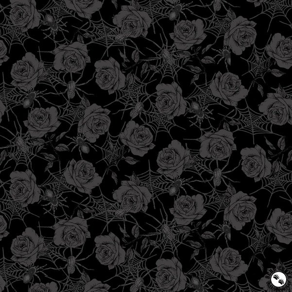 Studio E Fabrics Fear Factory Rose and Spider Toss Black