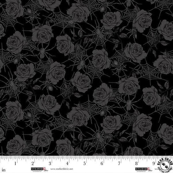 Studio E Fabrics Fear Factory Rose and Spider Toss Black