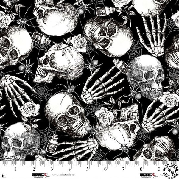 Fear Factory might give you chills—but it won’t stop you from weaving it into your Halloween decor! This eerie collection is packed with frightful charm: a pillow panel featuring skulls, black cats, and a murder of crows; crawling spiders spinning intricate webs; and haunting details that bring your projects to life (or... the afterlife). Stitch up spine-tingling pillows, craft an elegantly spooky quilt, or create decor that sets the perfect haunted mood. Whether it’s the creak of floorboards or the whisper of the wind, you’ll be ready to snuggle up under Fear Factory as the night comes alive. Let your creativity crawl—Fear Factory is full of wicked inspiration for Halloween!