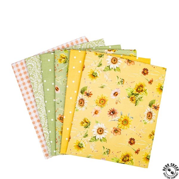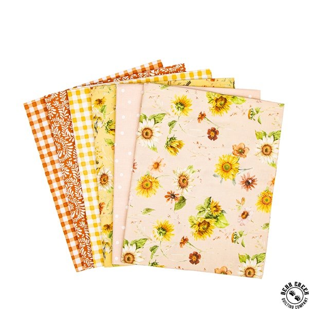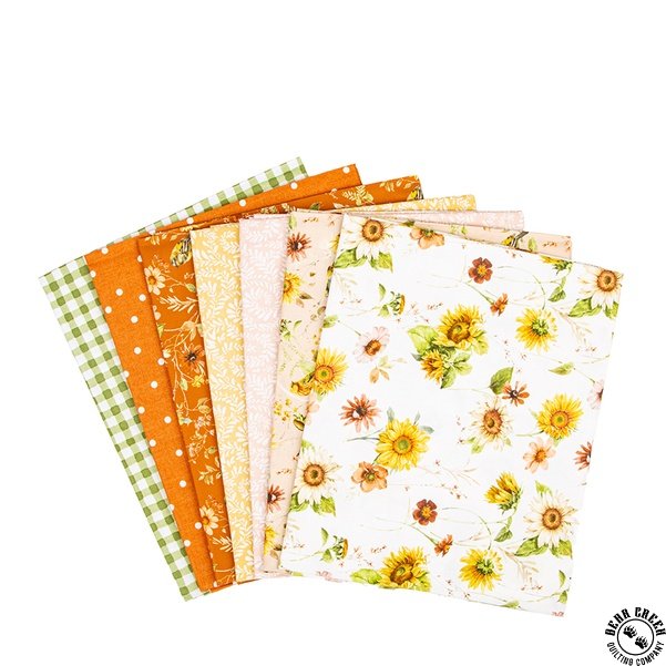 Bask in the gentle glow of Sunflower Whispers, where the warmth of sunshine meets the artistry of timeless design. Inspired by nature’s beauty, this collection flourishes in a vibrant palette of golden yellows, fresh greens, soft blush, warm pumpkin, and creamy neutrals. With its blend of rustic charm and graceful elegance, Sunflower Whispers invites you to create quilts and sewing projects that feel both radiant and enduring.