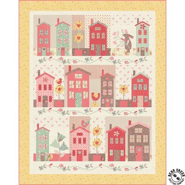 Lyda Rose fabric collection featuring classic fabrics in a soft, sun-kissed palette of yellow, aqua, pink, cream, and stone. Moda featured Bunny Hill Designs fabric collection in this new quilt pattern.