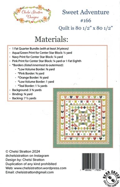 Sweet Adventure Quilt Pattern View Larger Image Price: SALE $8.39 2 item(s) available. Item # PTN-CSD-166 | Reg. $11.99 Pin It Anthem Quilt PatternFeaturing the Raspberry Summer fabric collection by Moda. Pattern and instructions; fabric not included Finished size is 80 1/2 inches by 80 1/2 inches Authored by Chelsi Stratton and Published by Chelsi Stratton Designs Copyright 2025 Related Products Bountiful Baskets Quilt Pattern Item # PTN-CSD-165 | Reg. $11.99 SALE from $8.39 Star Bright 2 Quilt Pattern Item # PTN-QLD-256 | Reg. $11.99 SALE from $8.39