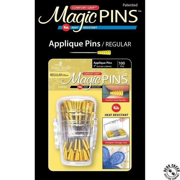 Taylor Seville Magic Pins Applique Regular View Larger Image Price: SALE $15.99 1 item(s) available. Item # TAYSEV-21953 | Reg. $19.99 Tweet Pin It Magic PinsHeat resistant and comfort grip! 100 - 1" (0.6mm x 26mm) Designer storage case Manufactured by Taylor Seville