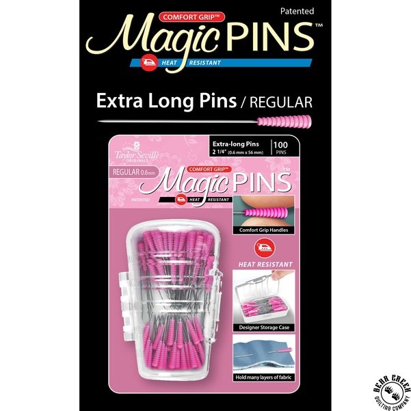 Taylor Seville Magic Pins Extra Long Regular View Larger Image Price: $19.99 4 item(s) available. Item # TAYSEV-21955 Tweet Pin It Magic PinsHeat resistant and comfort grip! 100 - 2 1/4" (0.6mm x 56mm) Designer storage case Manufactured by Taylor Seville Related Products Taylor Seville Bobbin Topper PLUS Item # TAYSEV-219843 $14.99 Taylor Seville Magic Pins Applique Regular Item # TAYSEV-21953 $19.99 Taylor Seville Magic Pins Quilting Regular Item # TAYSEV-21713 $19.99 Taylor Seville Magic Pins Silk Fine Item # TAYSEV-21951 $19.99