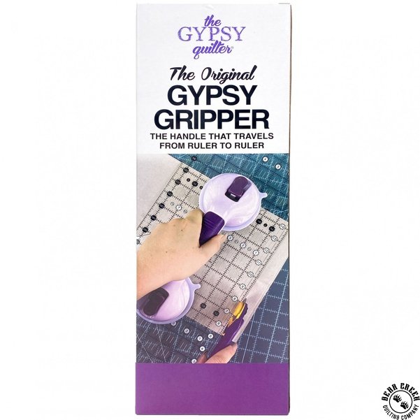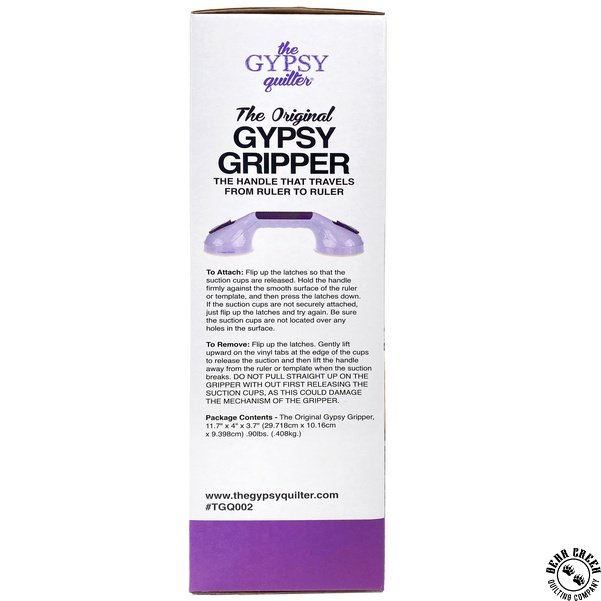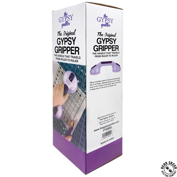 The Original Gypsy Gripper is designed with two suction cups that attach to any smooth ruler surface. The Gripper ensures that even pressure is applied to the cutting surface so you can relax and rest your hand comfortably over the handle. Since no death grip is required, this tool is recommended for anyone with hand issues such as arthritis and carpel tunnel. Your hand is always away from the rotary cutter so your fingers are out of harm’s way, making this a must have for any new or young quilter!